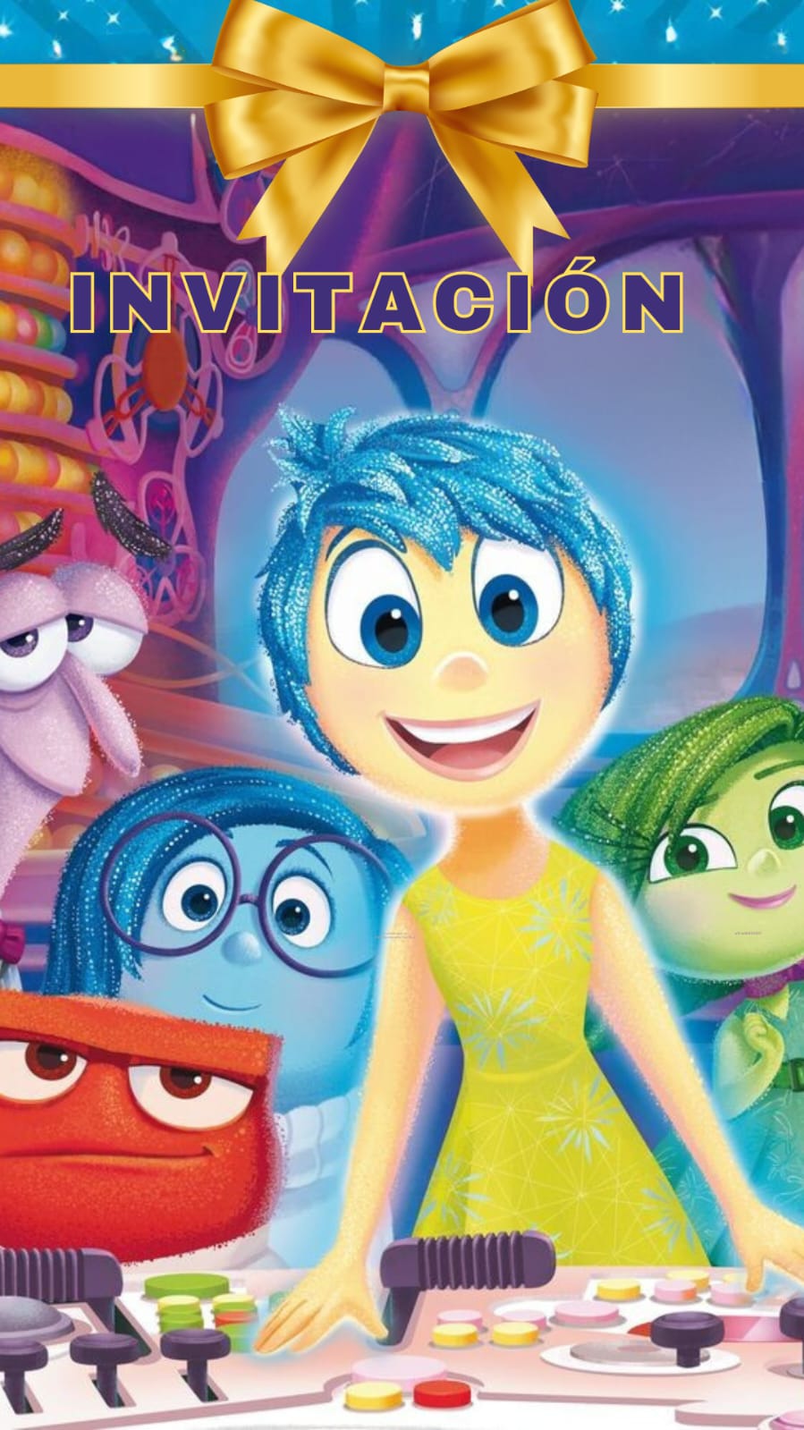 Deja que Alegría, Tristeza, Desagrado, Furia y Temor den la bienvenida a tus invitados en una divertida celebración llena de color y emociones. Nuestras invitaciones prediseñadas son tan vibrantes y únicas como la propia imaginación de los niños. 🌟🎈