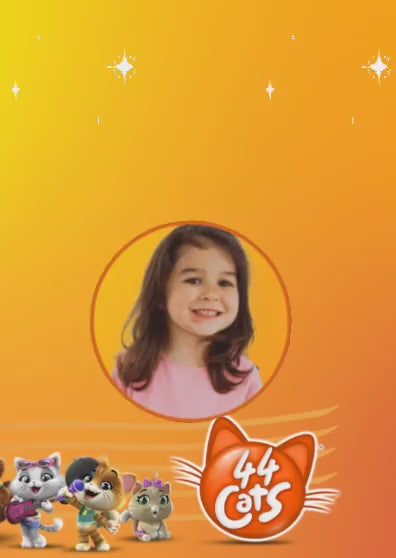 Personaliza tu invitación con los datos de la fiesta, el nombre del cumpleañero y otros detalles especiales. ¡Sorprende a todos tus invitados con una invitación temática que los transportará directamente al mundo de "44 Cats"!