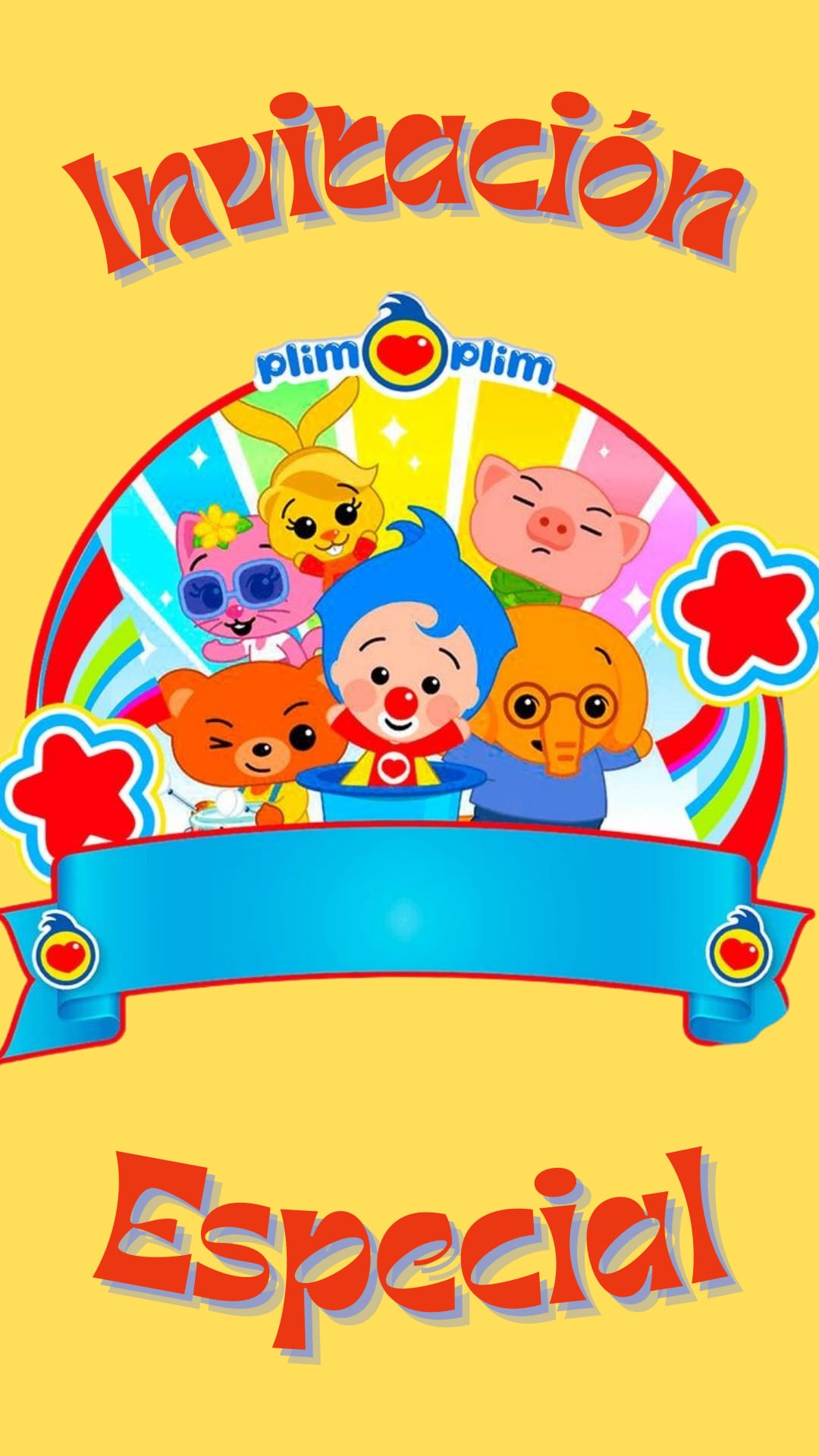 🌟 ¡Sumérgete en el mágico mundo de Plim Plim con nuestra invitación digital en formato video, diseñada con los vibrantes colores amarillo y rojo que tus pequeños adorarán! 🌟